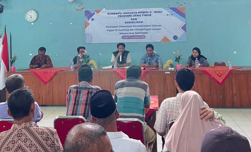 Metaranews.co, Kota Kediri – Pemprov Jawa Timur melalui UPT Pengelolaan Sumber Daya Air (PSDA) Wilayah Sungai Brantas Kediri menggelar sosialisasi persiapan pekerjaan pemeliharaan Saluran Irigasi Daerah Irigasi (DI) Gunting di Kantor Kelurahan Campurejo, Kecamatan Mojoroto, Kota Kediri, Minggu (16/11/2025).